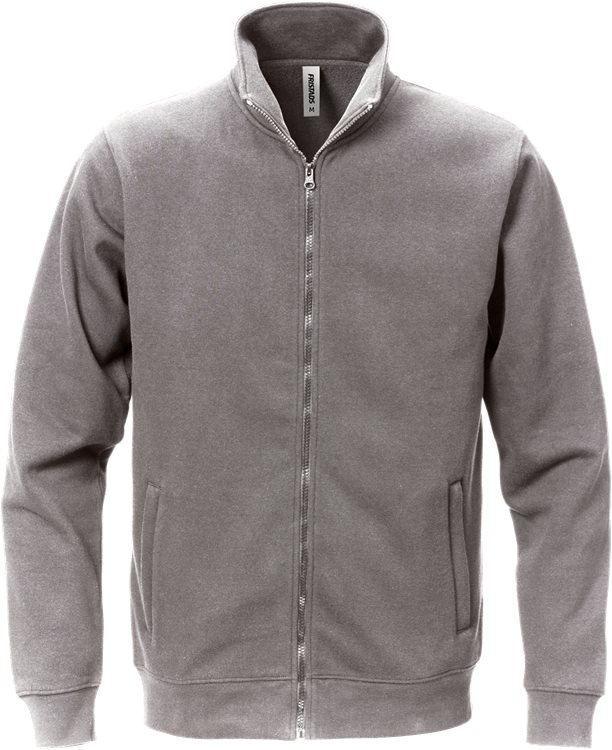 Collegetakki, jossa kokopitkä vetoketju ja vetoketjulliset etutaskut. Materiaali: 80 % puuvilla, 20 % polyesteri. Väri: Vaaleanharmaa (910)