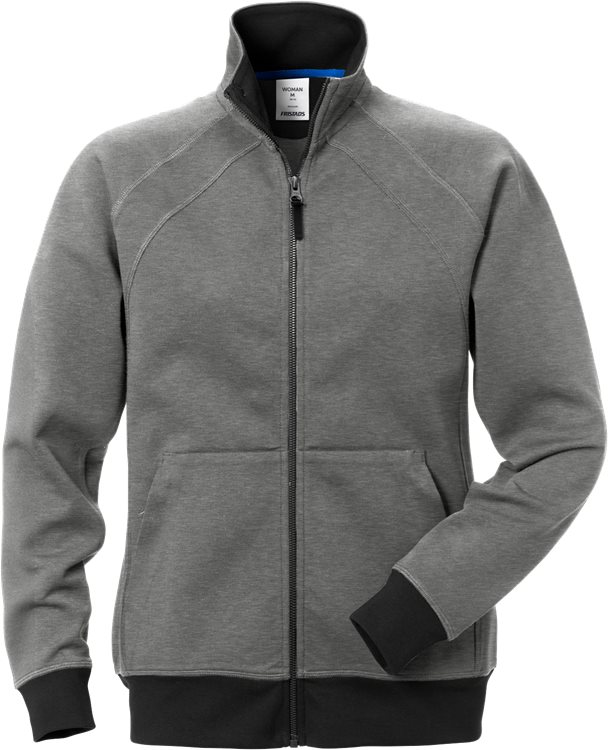 Ylellinen collegetakki pehmeästä doubleface-materiaalista, rintatasku ja etutaskut. Naisten malli. Materiaali: 80 % puuvilla, 20 % polyesteri. Väri: Vaaleanharmaa (910)