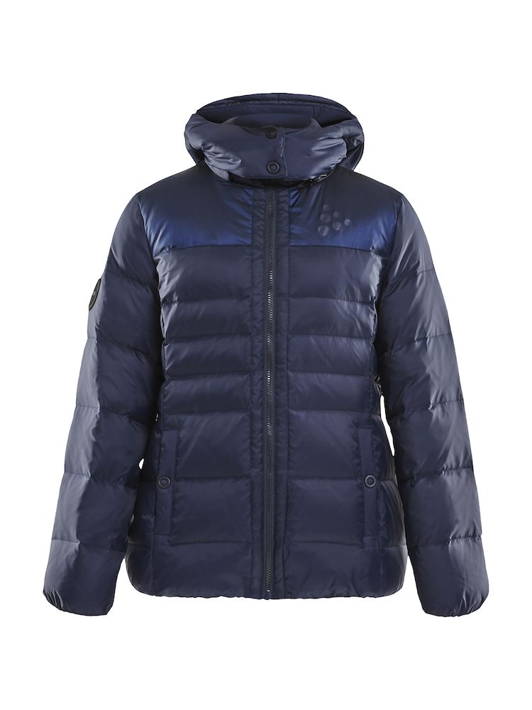Naisten lämmin untuvatakki, jossa irrotettava huppu. Sivutaskut sekä povitasku sisäpuolella. • Vahvistetut saumat