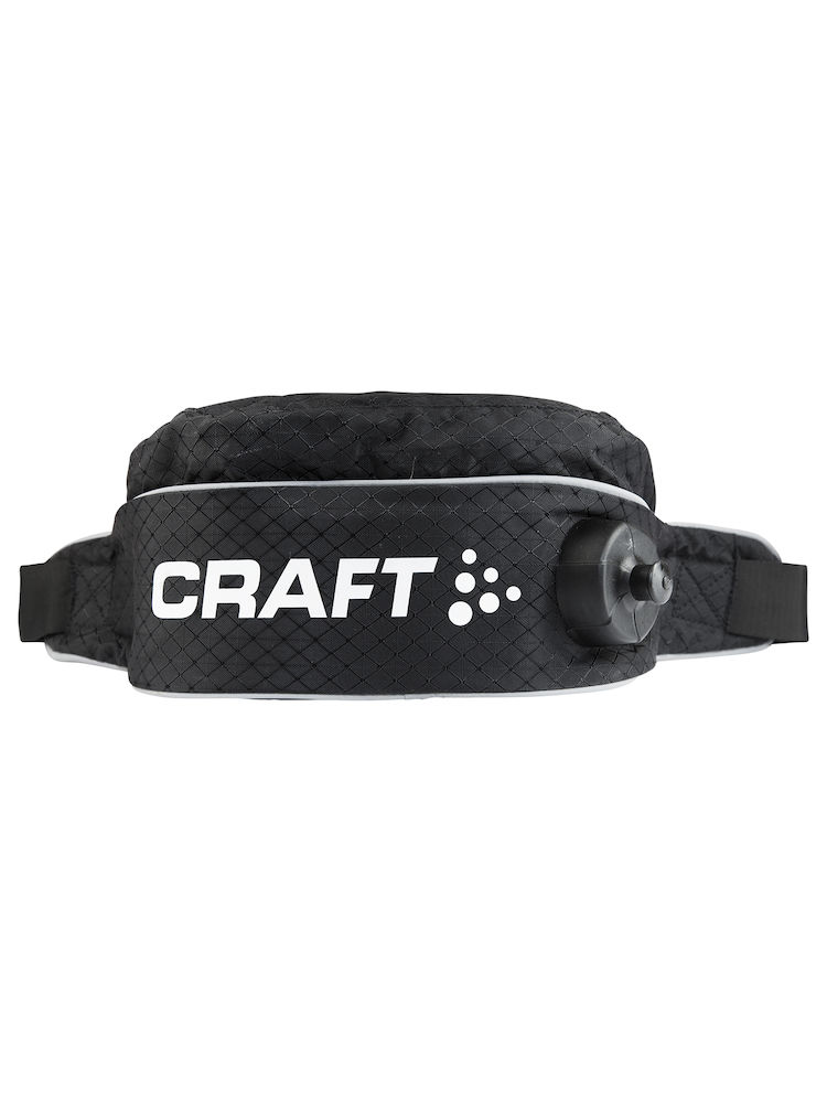 Waist bag with removable 0.9 liter drink container and 1 liter top compartment. Materiaali: Fabric 1: 100% Polyamide. Fabric 2:100% Polyester Väri: Black (9999)