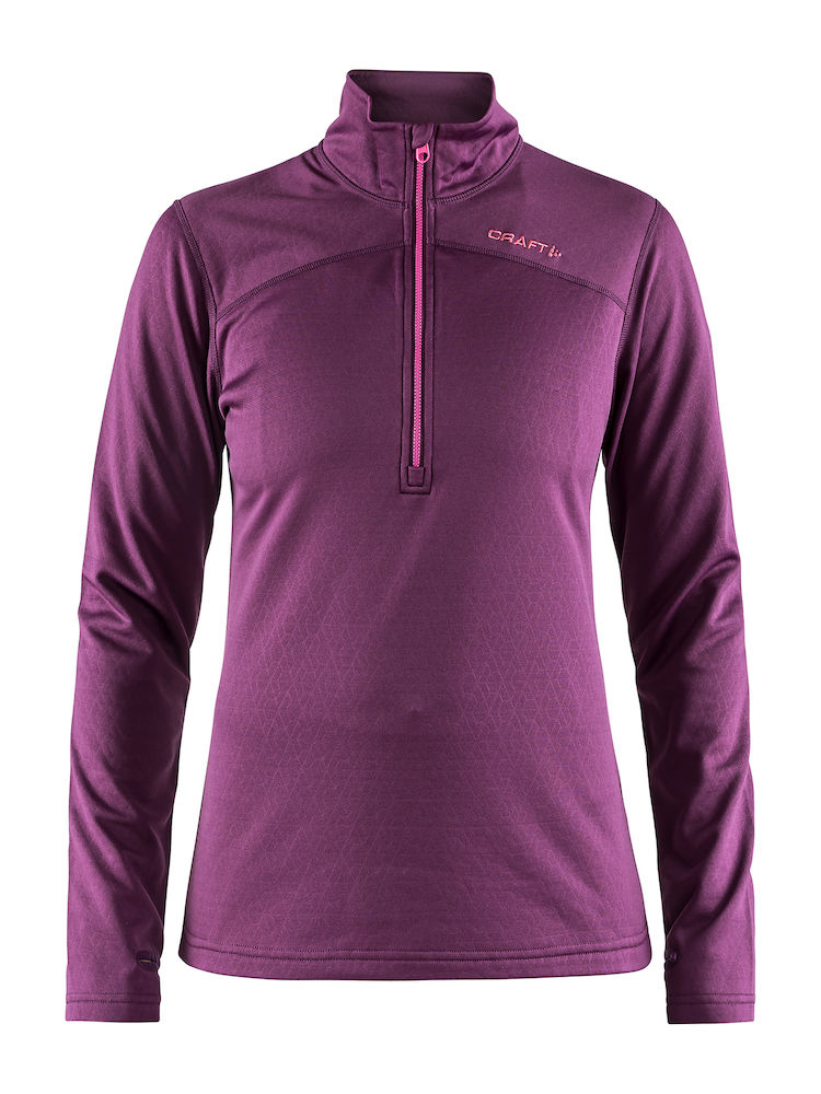 Pehmeästä ja toiminnallisesta sekä muotoonleikatusta polyesteristä valmistettu välikerrospaita puolikkaalla vetoketjulla. Pidennetty takaosa.