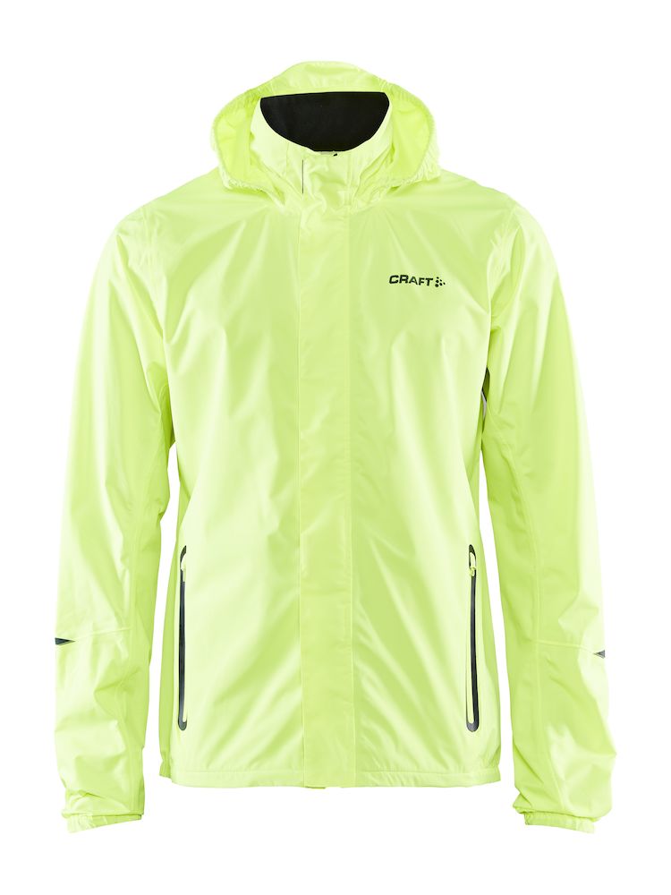 3-layer commuter rain jacket with hood, reflective details and ventilation at back.