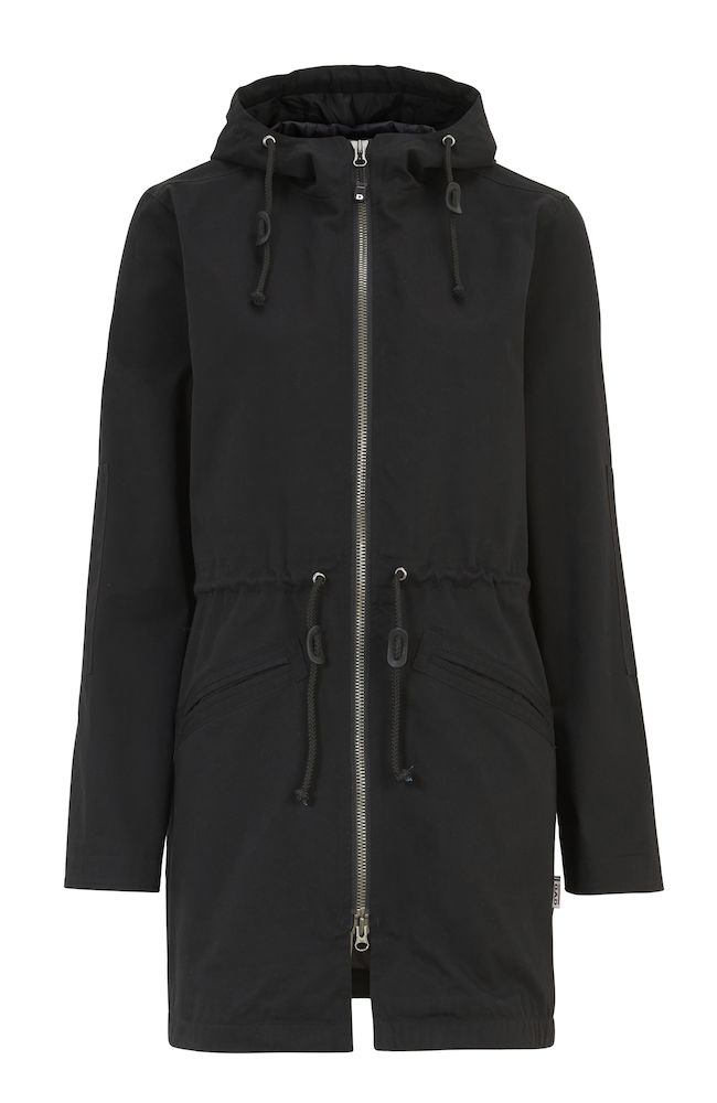 Puuvillainen takki, jossa on kiinteä huppu. Naisten pidemmässä mallissa käytännöllinen kiristysnauha vyötäröllä ja miehillä helmassa. Hupussa säädettävä kiristysnauha. Täysin vuorattu. Edessä pitkä YKK-vetoketju ja sivuilla kaksi taskua. Taskujen ympärillä koristeelliset tikkaukset. Naisten takissa hihansuissa painonapit.