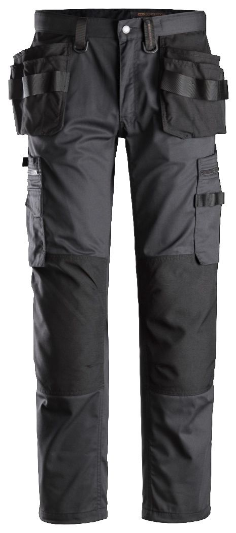 samantyyliset kankaat. Housuissa on vasaranpidikkeet, kaksi reisitaskua, joissa integroitu mittatasku, irrotettavat riipputaskut ja D-lenkit. Lahkeensuissa on kiristysnauhat.