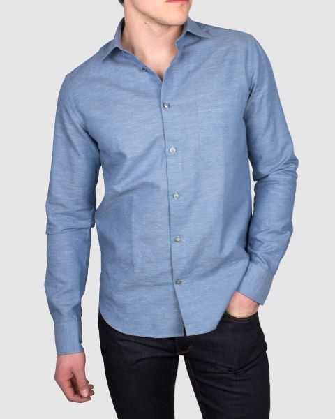 Paita on puuvilla-pellavasekoitetta. Siinä on Cutaway-kaulus ja helmiäisnapit. Paidassa on kapea istuvuus.