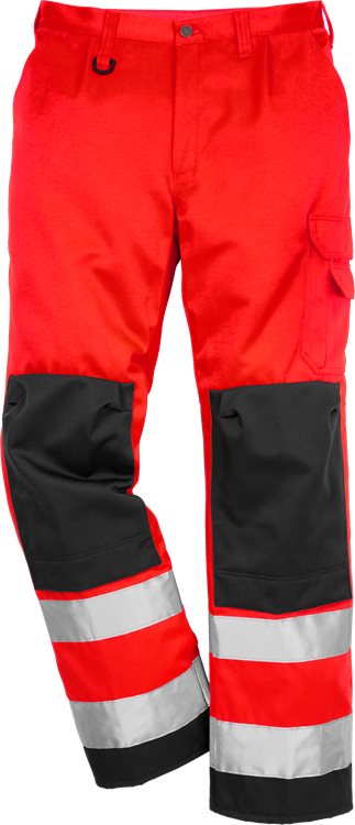 Huomiohousut likaa, öljyä ja vettä hylkivästä kaksoistwillistä. Polvisuojataskut. Kaikki heijastimet ommeltu kaksoisompeleilla kestävyyden varmistamiseksi. Hyväksytty teolliseen pesuun.