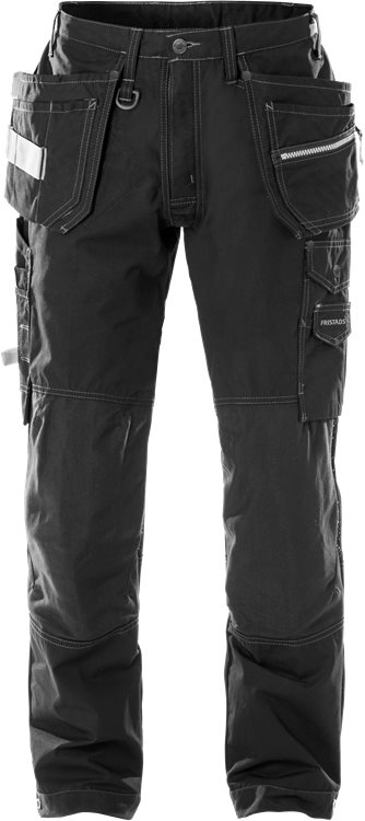 Vahvasta ja kevyestä ripstopmateriaalista valmistetut työhousut, tuuletusaukot takana ja polvitaipeissa parantavat mukavuutta lämpimissä olosuhteissa.