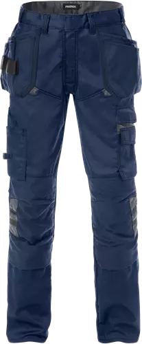 Rakentajan housut nykyaikaisella mitoituksella huolto-, teollisuus- ja rakennusaloille. Materiaali on kevyttä ja kestävää mekaanista stretch-kangasta, joka tuo housuihin hyvin liikkumatilaa. Hyväksytty teolliseen pesuun.