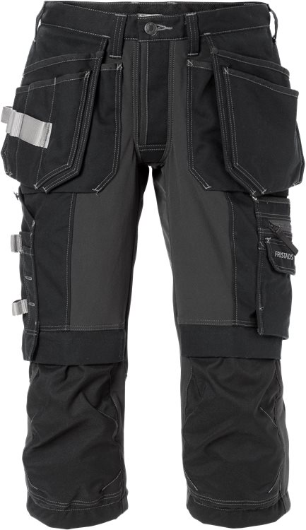 Vahvasta ja kestävästä materiaalista valmistetut caprihousut, joissa liikkumista helpottavat stretch-paneelit. Toimivat taskuratkaisut.