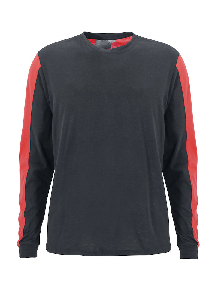 Pyöreäkauluksinen pitkähihainen t-paita. Voidaan pestä 60°C: ssa. Kontrastiväri hartioissa ja hihoissa. Värit: Musta/Keltainen (392), Musta/Oranssi (393), Harmaa/Punainen (394) Materiaali: 65%... Lue lisää