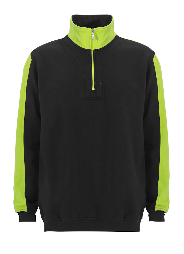 Collegepaita, jossa lyhyt vetoketjukaulus. Voidaan pestä 60°C:ssa. Kontrastiväri kauluksessa, hartioilla ja hihoissa.