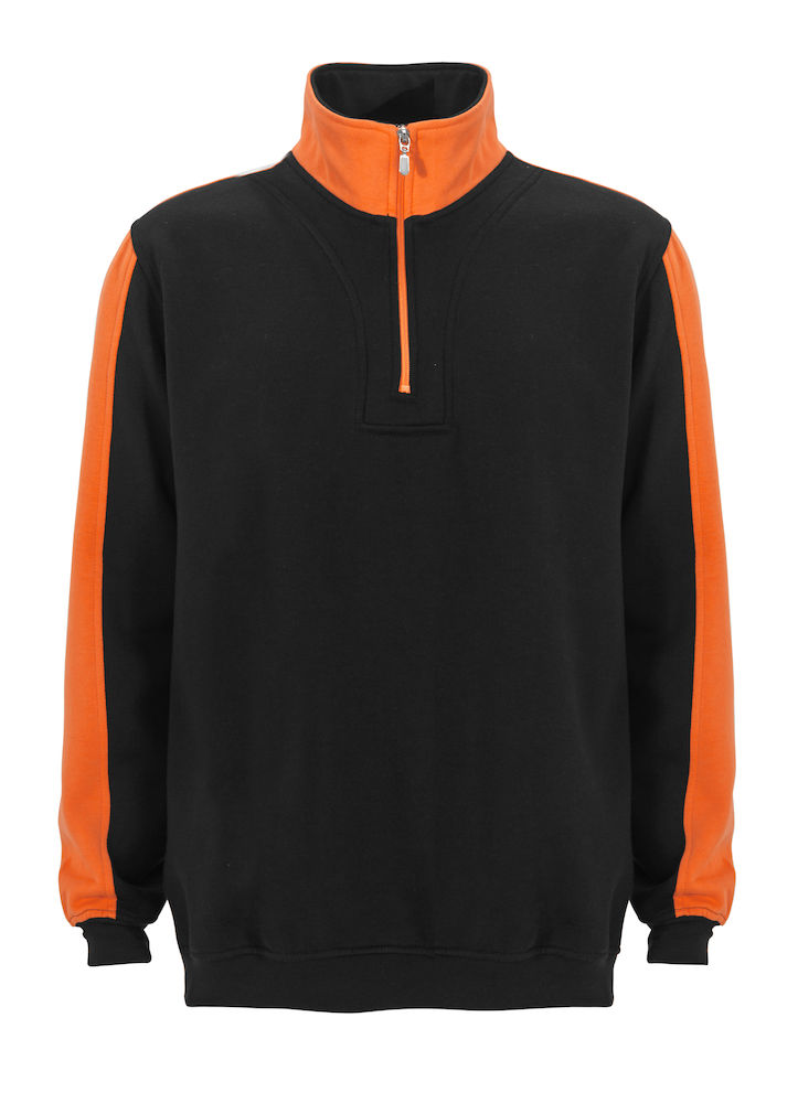 Collegepaita, jossa lyhyt vetoketjukaulus. Voidaan pestä 60°C:ssa. Kontrastiväri kauluksessa, hartioilla ja hihoissa.
