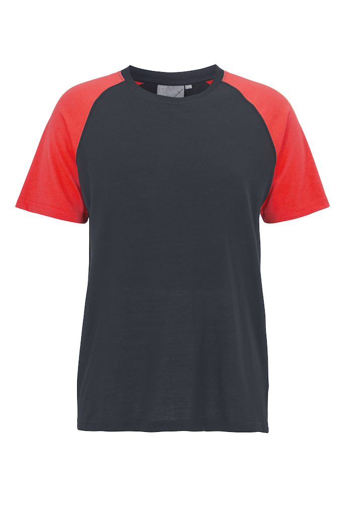 Pyöreäkauluksinen lyhythihainen t-paita. Voidaan pestä 60°C: ssa. Kontrastiväri hartioissa ja hihoissa.