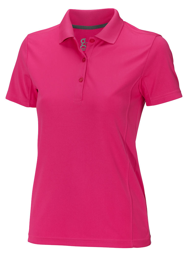 Naisten urheilullinen pikeepaita. Moderni leikkaus. Kontrasti värinen niskanauha. Värit: neonkeltainen (239), neonpinkki (439), sininen (739), harmaa (939), musta (990) Materiaali: 100% polyesteri... Lue lisää