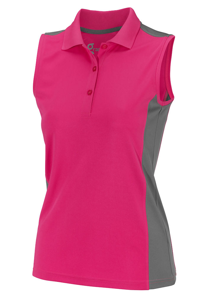 Urheilullinen naisten hihaton pikeepaita. Moderni leikkaus. Kontrastiväriset olkapäät ja sivuosat. Värit: Harmaa/Neonpinkki (304), Harmaa/Musta (309), Neonkeltainen/Musta (320), Neonpinkki/Harmaa... Lue lisää