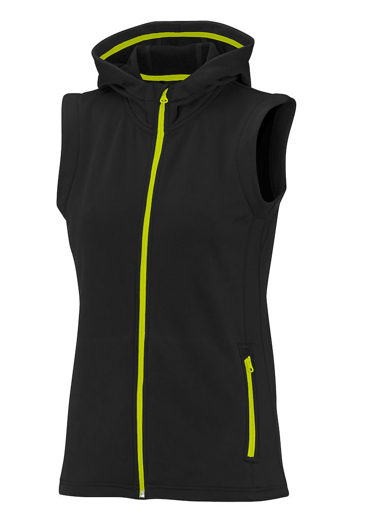 Sporttinen liivipusakka. Kontrastivärinen vetoketju edessä ja taskuissa. Kiinteä huppu. Pehmeäksi harjattu sisäpinta. Saatavana miesten ja naisten malli. Värit: 739 sininen, 990 musta, 439 neonpinkki