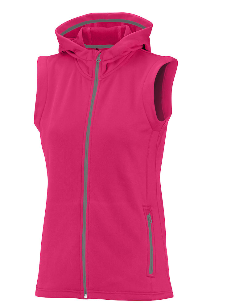 Sporttinen liivipusakka. Kontrastivärinen vetoketju edessä ja taskuissa. Kiinteä huppu. Pehmeäksi harjattu sisäpinta. Saatavana miesten ja naisten malli. Värit: 739 sininen, 990 musta, 439 neonpinkki