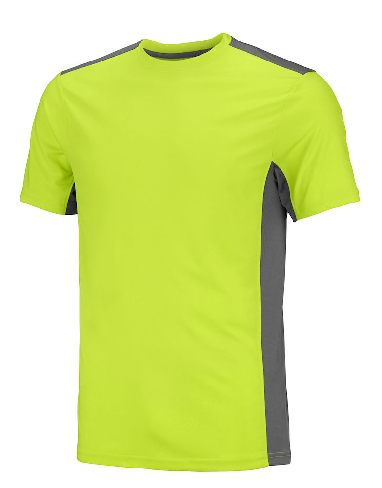 Tyylikäs ja istuva miesten t-paita. Kontrastiväri hartioissa ja sivuilla. Harmaa/Musta (309), Neonkeltainen/Harmaa (320), Neonpinkki/Harmaa (349), Sininen/Harmaa (370), Musta/Harmaa (399)