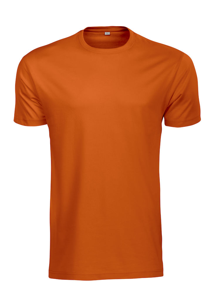 Uusi hyvin istuva t-paita, jossa ei ole sivusaumoja. Vahvistetussa kauluksessa on spandexia ja tuplatikkaus. Pyöröommellun karstalangan miedon entsyymikäsittelyn ansiosta kankaan laatu soveltuu hyvin painatukseen.
