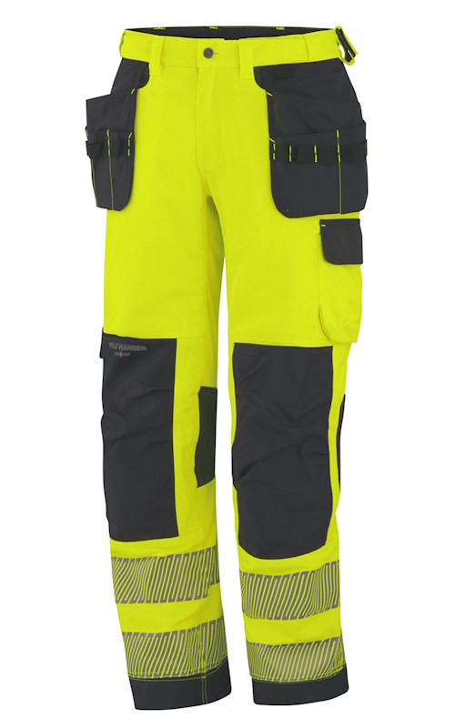 Toimivuutta ja turvallisuutta yhdistävä Helly Hansen York riipputaskuhousut. Valmistettu polyesterin ja puuvillan sekoitteesta, ja Cordura-vahvikkeet lisäävät kestävyyttä; nämä housut ovat kestävät ja mukavat käyttää. Polvet on nivelletty lisäämään ergonomiaa ja mukavuutta, ja niissä on säädettävät sisäpolvisuojataskut. Helly Hansen York Pant CL2:ssa on useita käytännöllisiä säilytystaskuja edessä ja sivuilla, ja tarvikepidikkeet työkaluille.