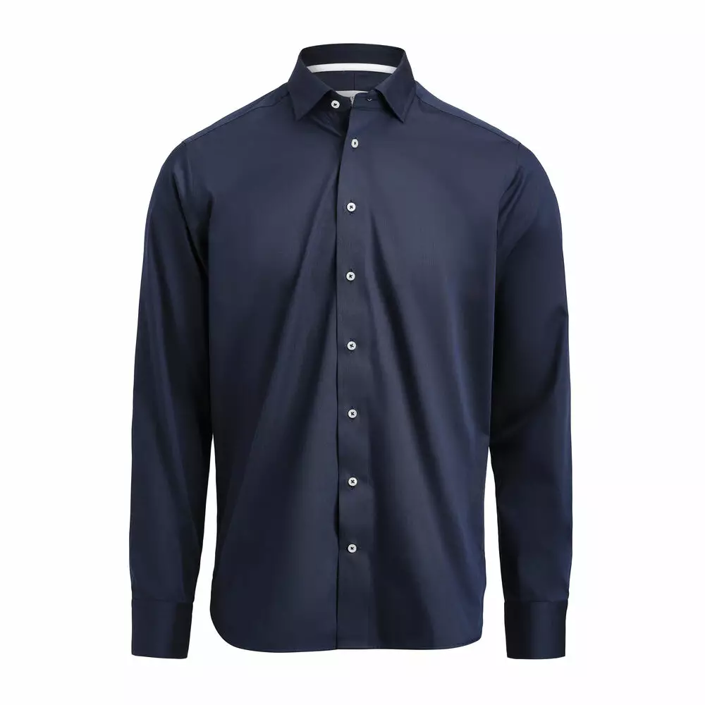 Korkealuokkainen kauluspaita on valmistettu twill-kankaasta, jossa on Easy Care -käsittely ja moderneja kontrastiyksityiskohtia. Piilotettu Button Down -kaulus ja kuten aina, J. Harvest & Frostin kauluspaidat on varustettu teipatuilla saumoilla ja jaetulla selkäkaarrokkeella.