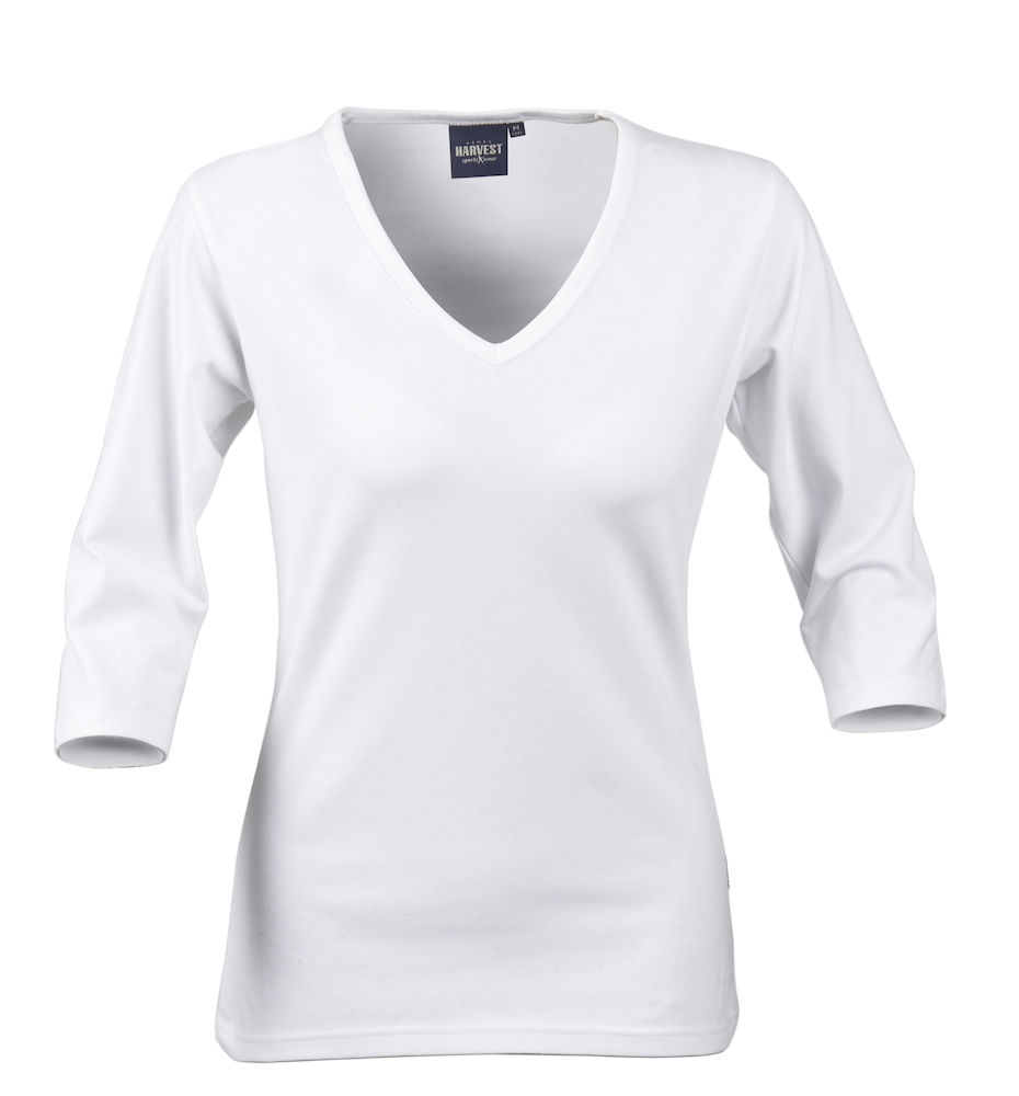 Naisten V-aukkoinen t-paita ¾-hihalla. Joustavaa puuvillasekoitteista trikoota.