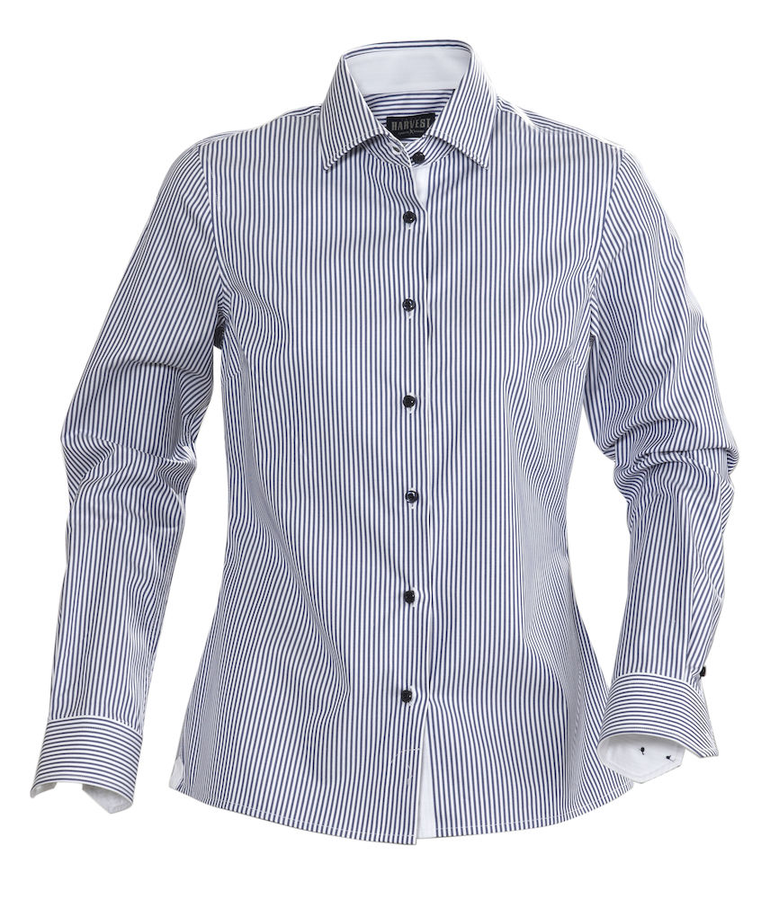 Naisten korkealuokkainen raitakuosillinen kauluspaita, kampapuuvillaa. Easy Care -käsitelty kangas ja huolitellut saumat kauluksessa ja kalvosimissa antavat viimeistellyn ja tyylikkään ilmeen. Kontrastivärit kauluksessa, nappilistassa ja hihansuissa. Moderni leikkaus, muotolaskokset selässä.