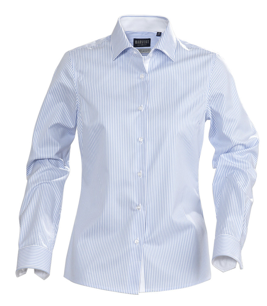 Naisten korkealuokkainen raitakuosillinen kauluspaita, kampapuuvillaa. Easy Care -käsitelty kangas ja huolitellut saumat kauluksessa ja kalvosimissa antavat viimeistellyn ja tyylikkään ilmeen. Kontrastivärit kauluksessa, nappilistassa ja hihansuissa. Moderni leikkaus, muotolaskokset selässä.