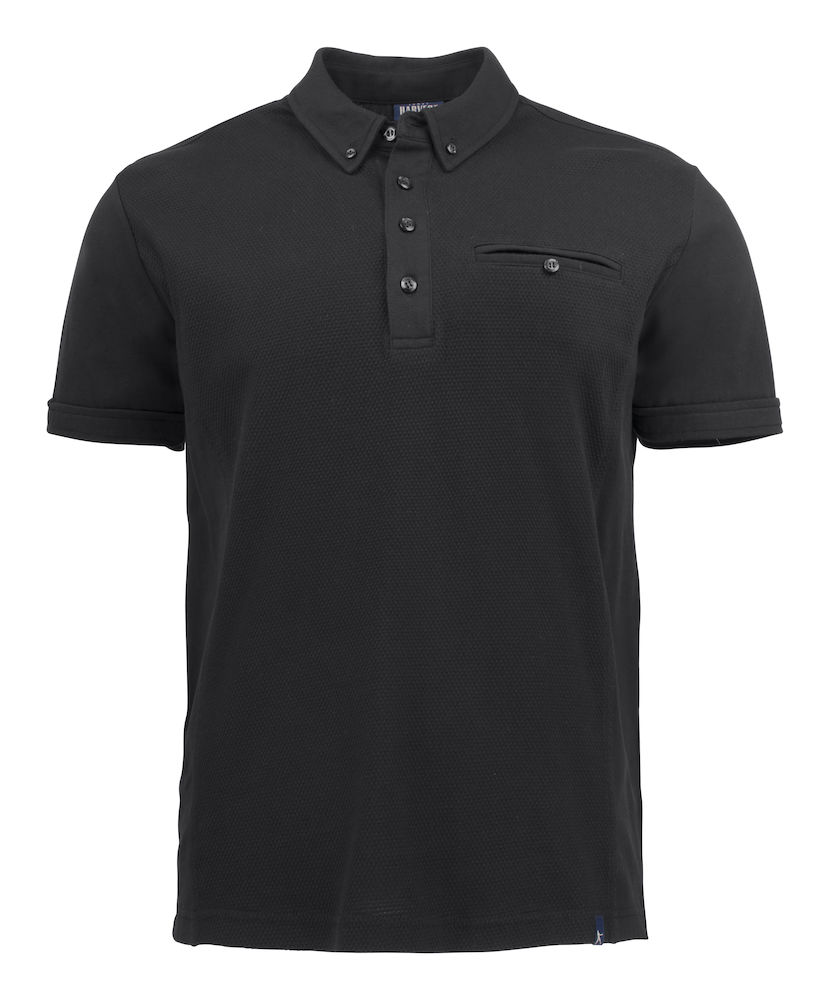 Pikeepaita jossa helmassa halkiot sivuilla. Jakardikuviointi edessä ja takana. Kudottu kaulus, hihansuut sekä sivut. Miesten paidassa button down -kaulus, rintatasku ja nappilista neljällä napilla.