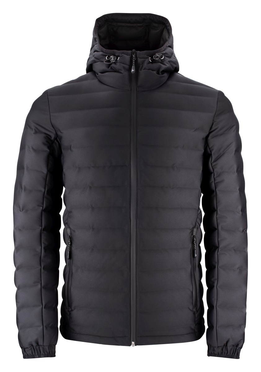 Topattu talvitakki, jonka pintakangas ja täyte on valmistettu kierrätetystä polyesteristä. Vedenkestävä vetoketju edessä ja sivutaskuissa.