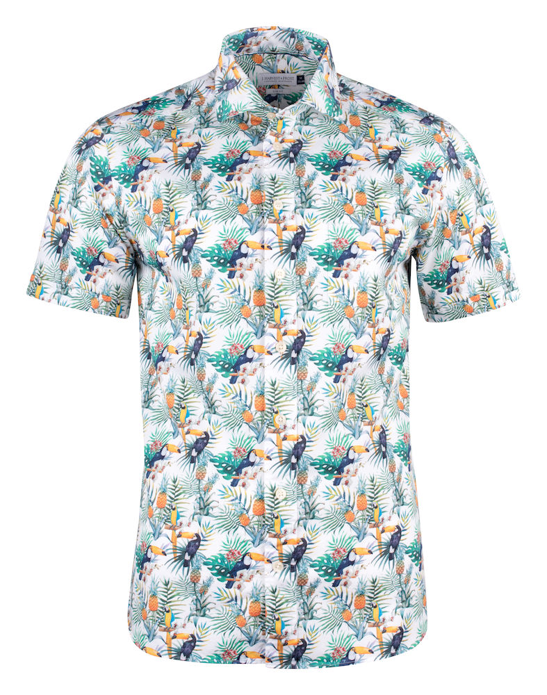 Kesäinen ja laadukas lyhythihainen kauluspaita printtikuviolla. 100 % puuvilla.