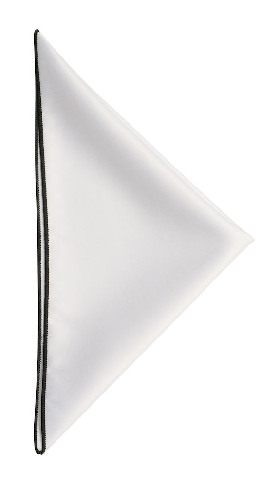 Teimme tähän puhtaanvalkoiseen taskuliinaan reunat useassa eri värissä. Voit yhdistää taskuliinan ja kalvosinnapit asuusi tai yrityksesi väreihin.