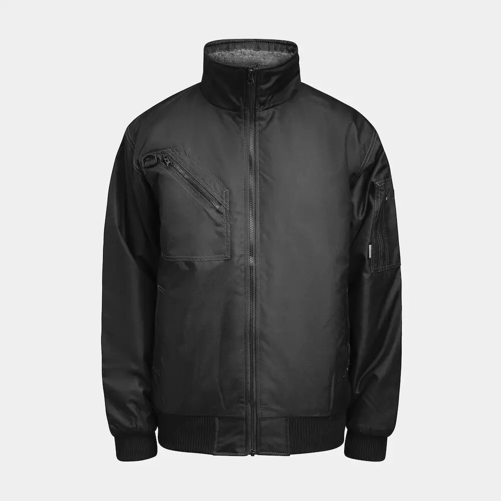 Kulutusta kestävästä polyesteristä valmistettu talvitakki, jossa joustava ja mukava tikkivuori. Resorit vyötäröllä ja hihansuissa takaavat hyvän istuvuuden. Pilottimallinen takki on myös vettähylkivä, ja kauluksessa on lämmin pileevuori lisäämässä käyttömukavuutta. Takissa on käytännölliset rintataskut ja hihatasku vetoketjuilla, etutaskut sekä sisätasku, jossa erillinen puhelinlokero. D-rengas soveltuu henkilökorttipidikkeen kiinnitykseen. Musta väri saatavilla kokoon 5XL asti (+9900: 4XL, 5XL).