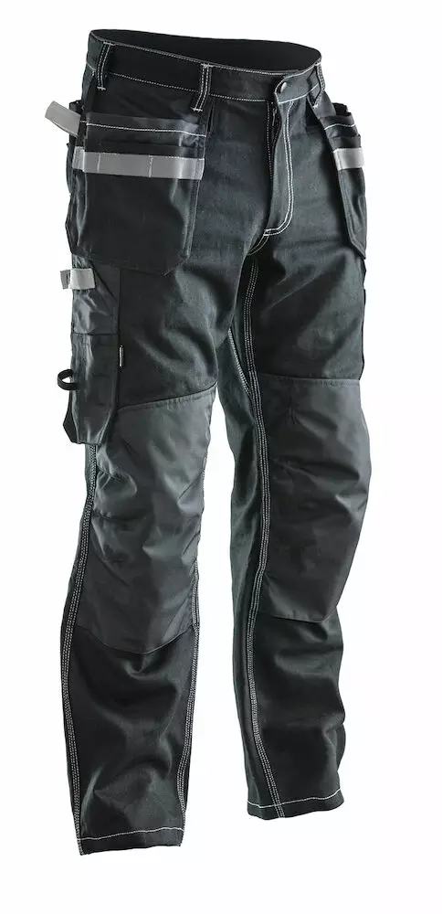 Housuissa polyamidivahvikkeet riippu- ja takataskuissa, tuumamittataskussa sekä polvisuojataskuissa, jotka lisäävät kestävyyttä ja suojaavat kulutusta vastaan. Puhelintasku lonkan kohdalla. Tilavat riipputaskut lisälokeroilla ja vahvistetulla sisäosalla. Sisäänommellut etutaskut, joiden sisään riipputaskut voidaan työntää. Vasaralenkki. Takataskujen sisäpuoli vahvistettu. Eteenpäin siirretty vahvistettu tuumamittatasku, jossa on irtonainen alaosa ja puukkonappi. Reisitasku, jossa puhelinlokero. Polvista taivutetut lahkeet, joissa kulutusta kestävät polvitaskut polyamidia. Polvisuojataskut kahdessa korkeudessa. Housuista on saatavilla myös miesten malli 2200. Sertifioitu standardien EN 14404:2004 ja A1:2010, tyyppi 2, taso 1 mukaisesti yhdessä Jobmanin polvisuojien 9943, 9944 ja 9945 kanssa. Oeko-Tex-sertifioitu.