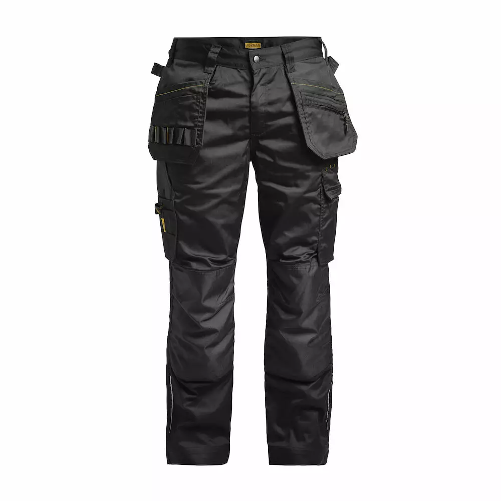 Riipputaskuhousut, jotka on valmistettu helppohoitoisesta polyesteri / puuvillasekoitteesta, joka säilyttää värinsä ja muotonsa. Riipputaskut lisälokerolla ja vetoketjullinen lisätasku. Läpälliset takataskut tarranauhakiinnityksellä. Reisitasku lisälokerolla ja tarranauhalla kiinnitettävällä läpällä. Tuumamittatasku puukkopidikkeellä. Vahvikkeet riipputaskuissa ja polvisuojataskuissa. Kokoja C42-64 voidaan pidentää 5 cm lahkeensuiden taitoksesta.