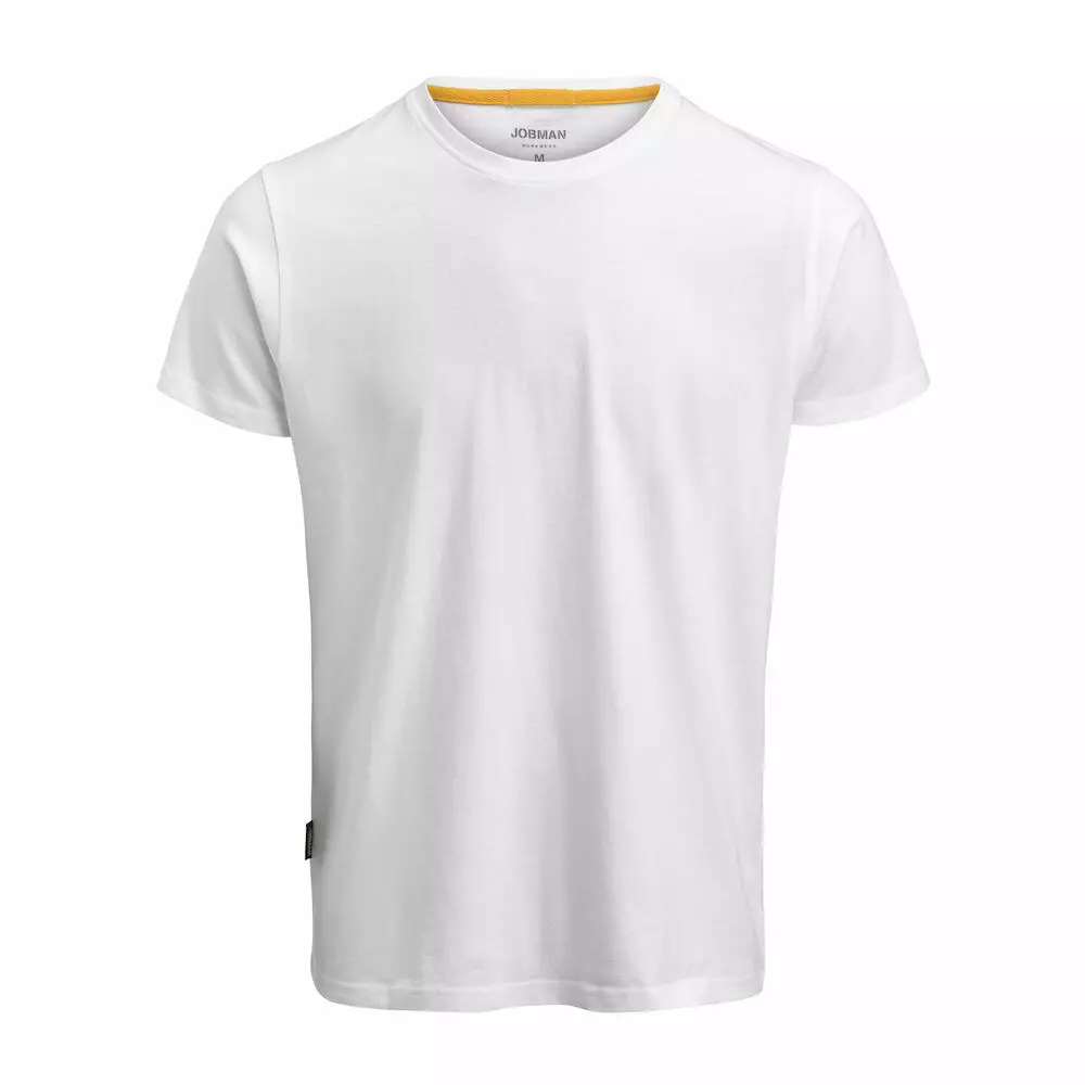 T-paita sileää neulosta, kammattua ja rengaskehrättyä puuvillaa, joka takaa miellyttävän tunteen ja kestävyyden. Pääntie 95% puuvillaa, 5% elastaania. Koristeena kangasmerkki oikeassa hihassa (vain väri 7600 oliivinvihreä).