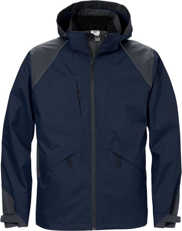 Kevyt tuulenpitävä ja vettä hylkivä kuoritakki, hartioilla kontrastiväriset ja heijastavat tereet.