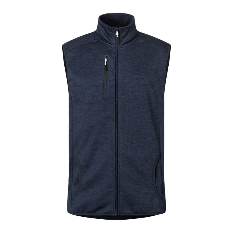Fleeceliivi meleerattua bondattua jerseyneulosta. Rintatasku ja kaksi sivutaskua ilman vetoketjua.