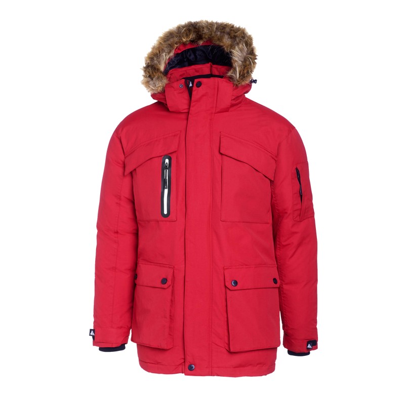 Talviparka todella kymiin talvisäihin. Tuulenpitävä ja vettähylkivä, PFC-vapaa Bionic Eco -kyllästys. Takissa on runsaasti taskuja ja muita yksityiskohtia. Säädettävä kiristysnyöri vyötäröllä ja irrotettava huppu.