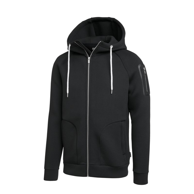 Scuba-huppari kaksipuolista bondattua polyesteriä. Kaksi sivutaskua ja tasku vasemmassa hihassa.