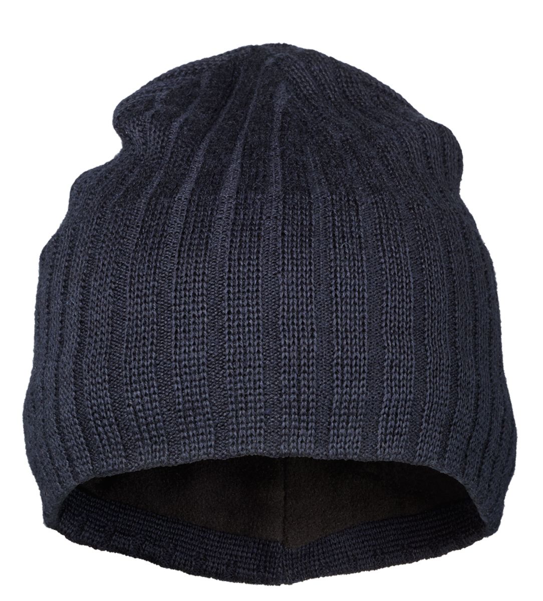 ALEC ribbipipo puolikkaalla fleece vuorella. Lämmin pipo kylmemmillekin keleille. Materiaali: Villa /akryyli Väri: Navy