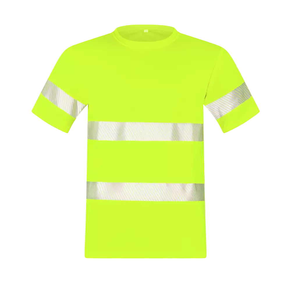 Huomiovärinen tekninen t-paita. Joustava ja hengittävä paita on valmistettu 100 % polyesteristä. Katkonaiset, saumattomat heijastimet eivät hierrä ihoa tai kiristä.