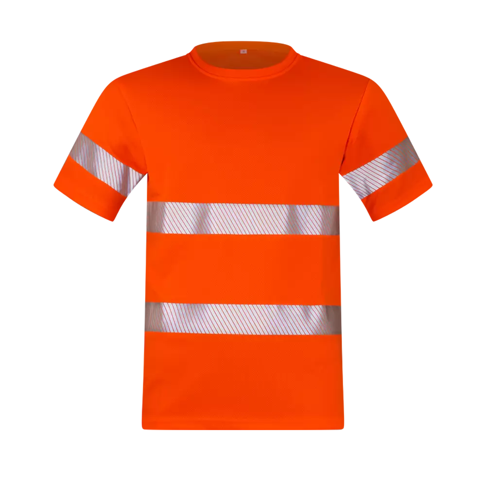 Huomiovärinen tekninen t-paita. Joustava ja hengittävä paita on valmistettu 100 % polyesteristä. Katkonaiset, saumattomat heijastimet eivät hierrä ihoa tai kiristä.