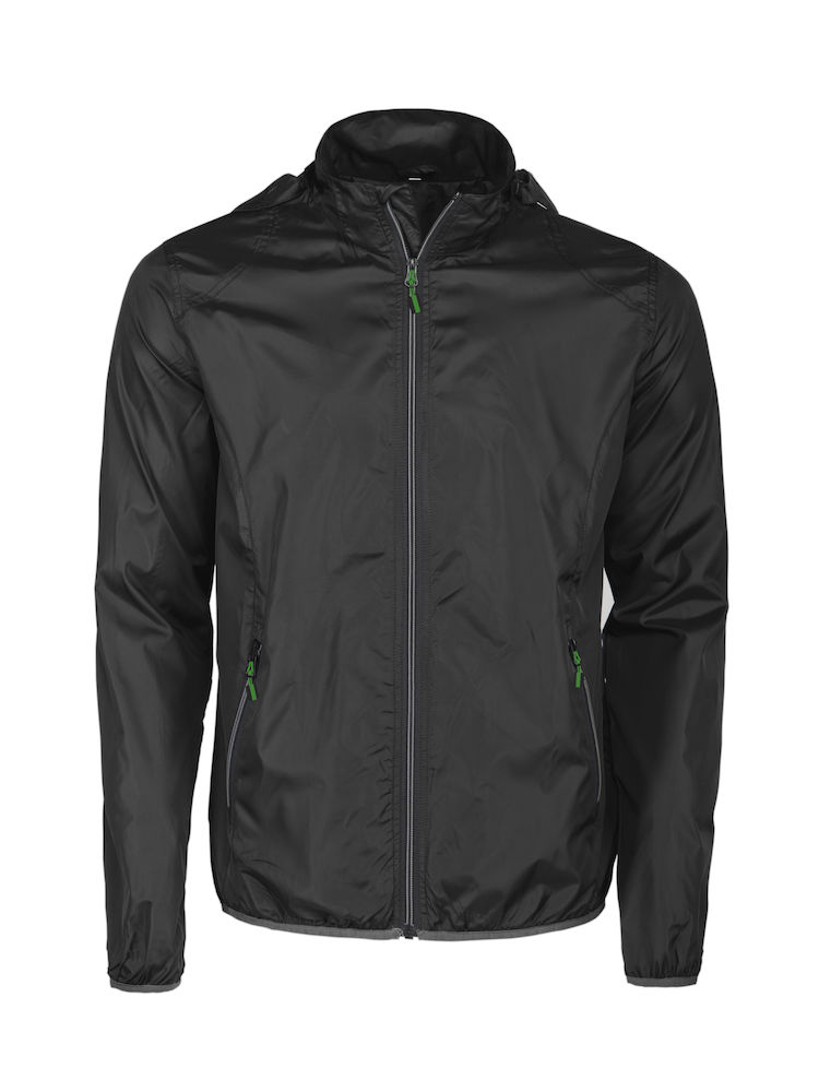 Kevyt tuulitakki irrotettavalla hupulla. Etutasku muuntuu kätevästi pieneksi kuljetuspussiksi takille. Vetimet vaihdettavissa yrityksen sävyihin erikseen myytävillä vetimillä.