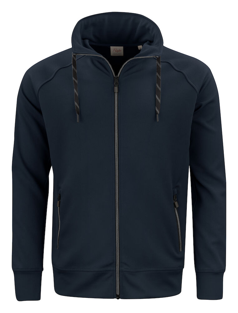Printer takki. Sporttinen takki on valmistettu 100% kierrätetystä polyesterista. Vetoketjullisessa takissa on raglanhihat ja kauluksessa kaksiväriset kiristysnauhat sekä vetoketjukiinnitys ja kaksi vetoketjullista etutaskua kontrastivetimillä. Kauluksessa piilovetoketju, jonka kautta vaihdat helposti kiristysnauhat.