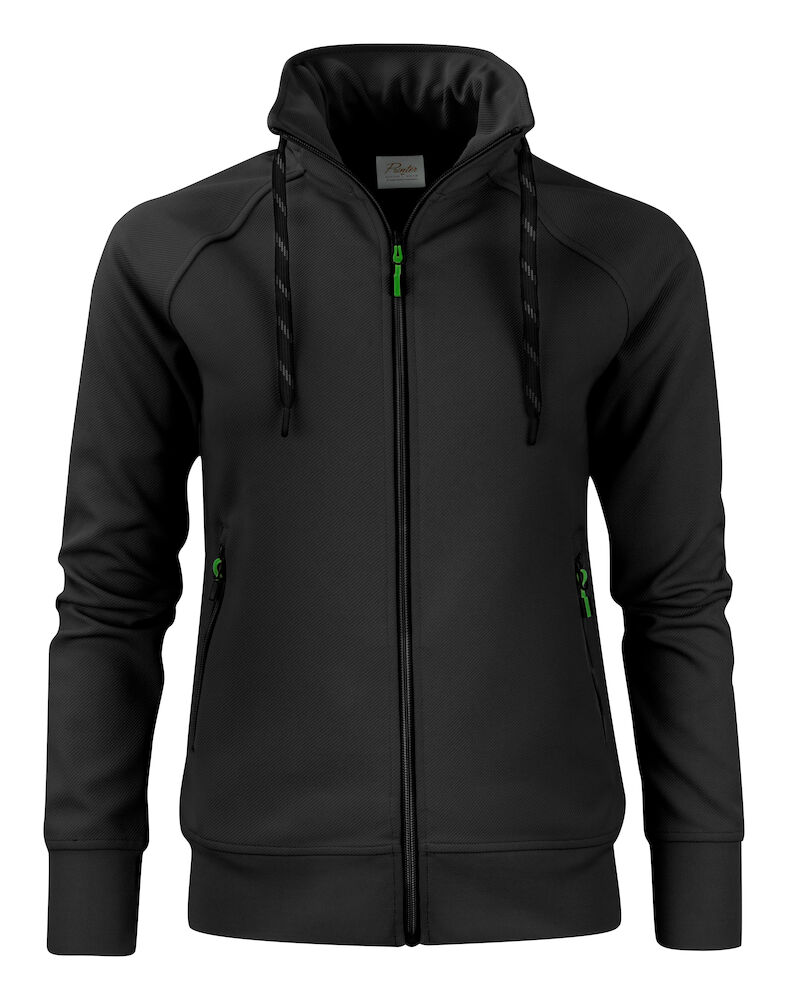 Printer takki. Sporttinen takki on valmistettu 100% kierrätetystä polyesterista. Vetoketjullisessa takissa on raglanhihat ja kauluksessa kaksiväriset kiristysnauhat sekä vetoketjukiinnitys ja kaksi vetoketjullista etutaskua kontrastivetimillä. Kauluksessa piilovetoketju, jonka kautta vaihdat helposti kiristysnauhat.