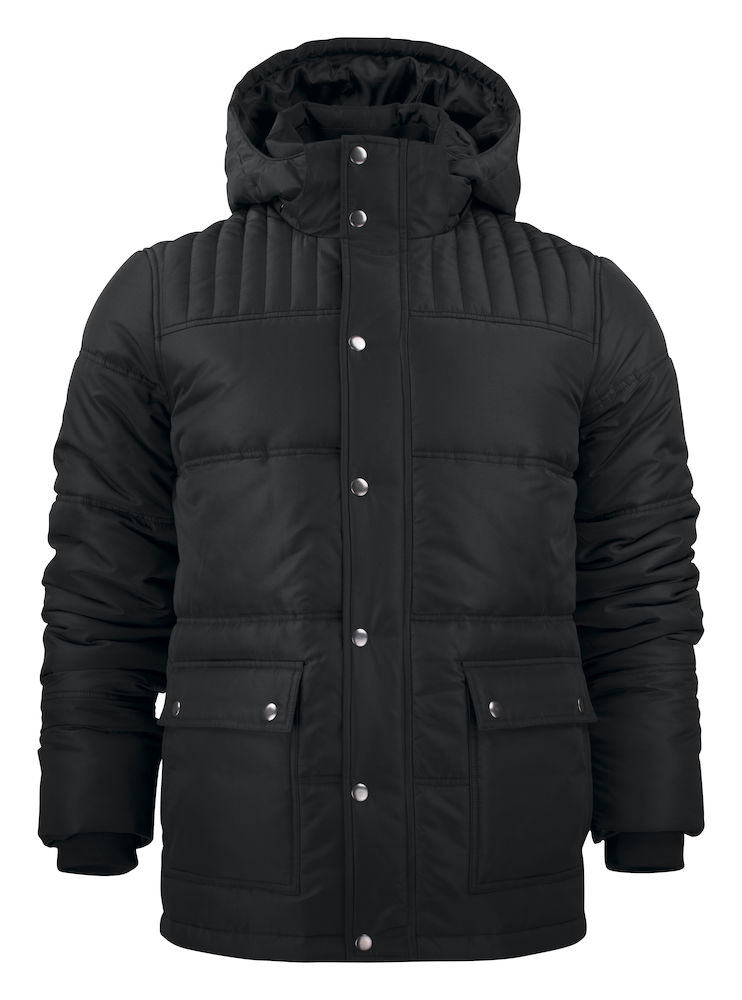 Tikattu toppatakki, jossa on säädettävä helma sekä paksu, lämmin ja sileä vuori. Takissa on kaksoiskiinnitys; vetoketju ja painonapit. Hyvin istuva, pidempi takaosa. Edessä kaksi käytännöllistä etutaskua, sisäpuoli fleeceä. Irrotettava huppu, jonka istuvuutta voi säätää hupun kiristysnyöreillä. Vetoketjullinen povitasku. Resorit hihansuissa. Vetoketjullinen povitasku.