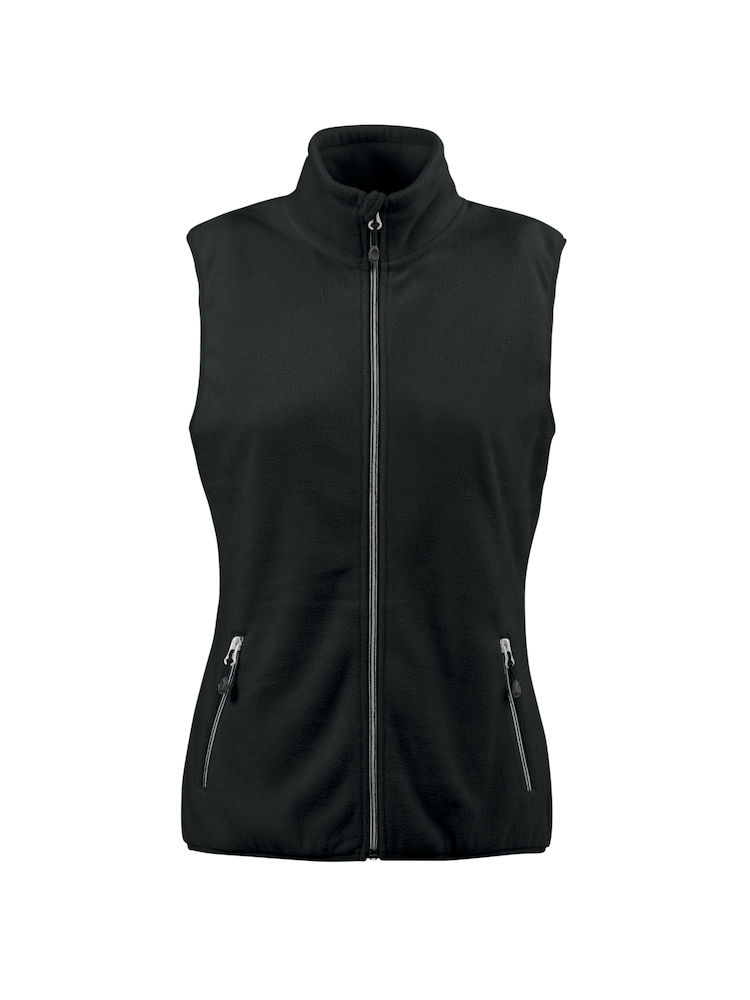 Paksu fleeceliivi. Kangas molemmin puolin harjattu. Etutaskut ja kontrastit vetoketjuissa. Elastinen nauha helmassa.