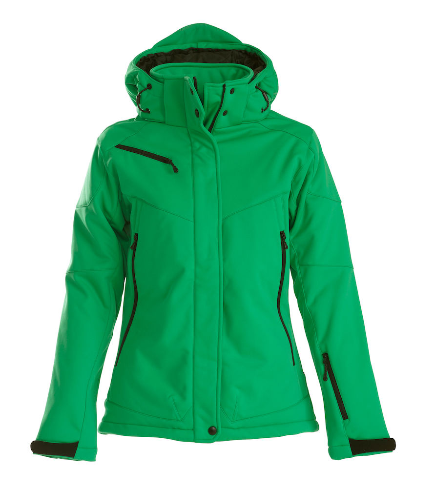 Topattu softshell-takki. Irroitettava huppu, muotoonleikatut hihat, kiristysnauha helmassa sekä kiristystarrat hihansuissa. Rinta- ja sivutaskut vetoketjuilla, kaksi vetoketjullista povitaskua ja yksi verkkotasku.
