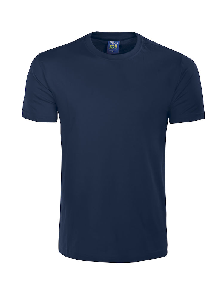 T-paita single jersey -neulosta (värit 10 ja 17 interlock-neulosta). Päivitetty mitoitus, kauluksessa kaksinkertainen joustoneulos ja niskanauha. Sivusaumaton.